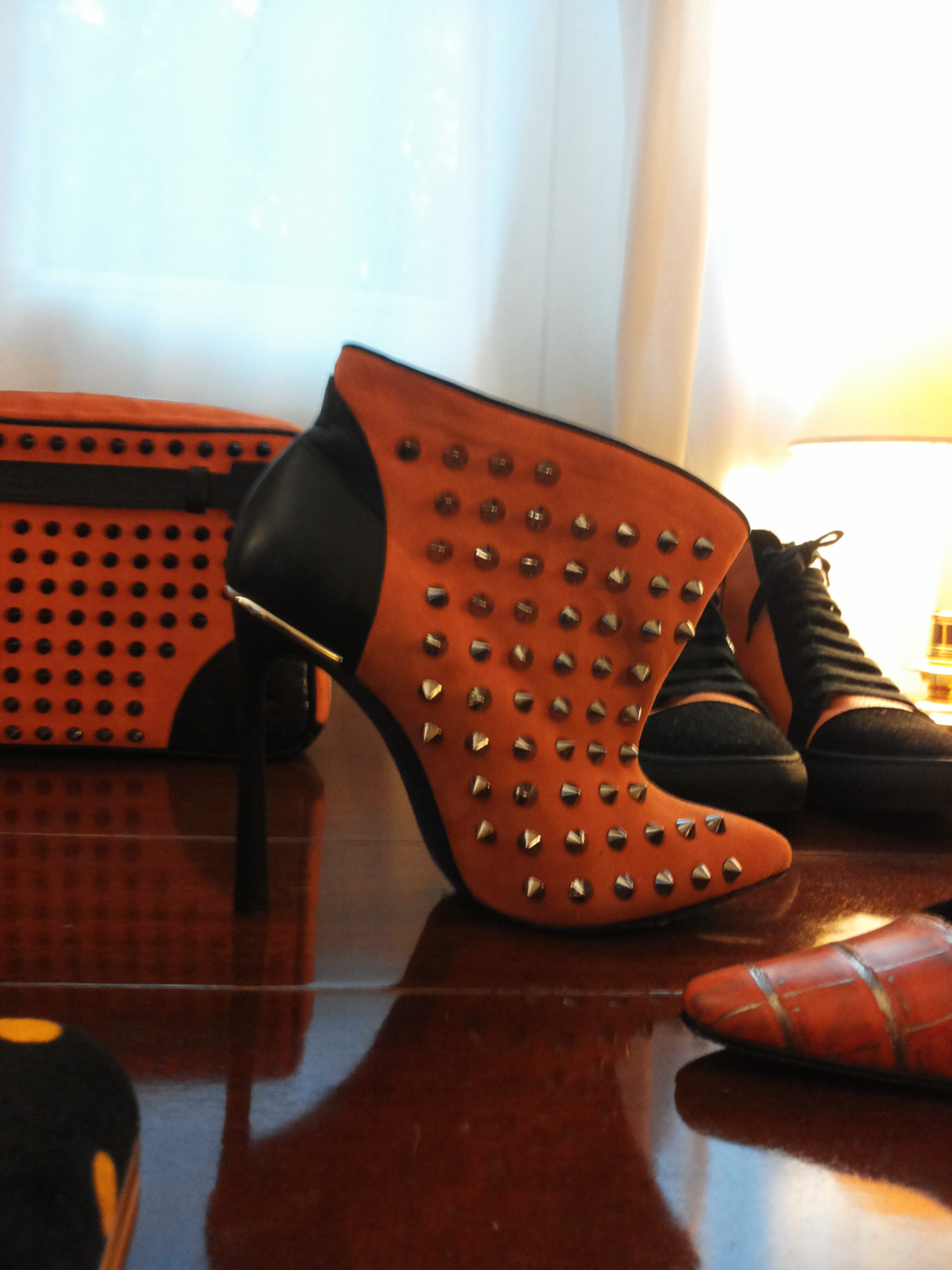 Perdonatemi, ma a me queste creazioni continuano a non piacere. Non apprezzo il tacco a sfere, che trovo troppo kitsch, né la scelta cromatica (il punto di giallo degli stivali o l’arancione degli stivaletti borchiati). Poi, personalmente, trovo le borchie applicate in abbondanza sulle calzature ormai totalmente sorpassate. Insomma, tra le donne che questo giovane designer riesce ad interpretare magistralmente, ahimè, non ci sono io.