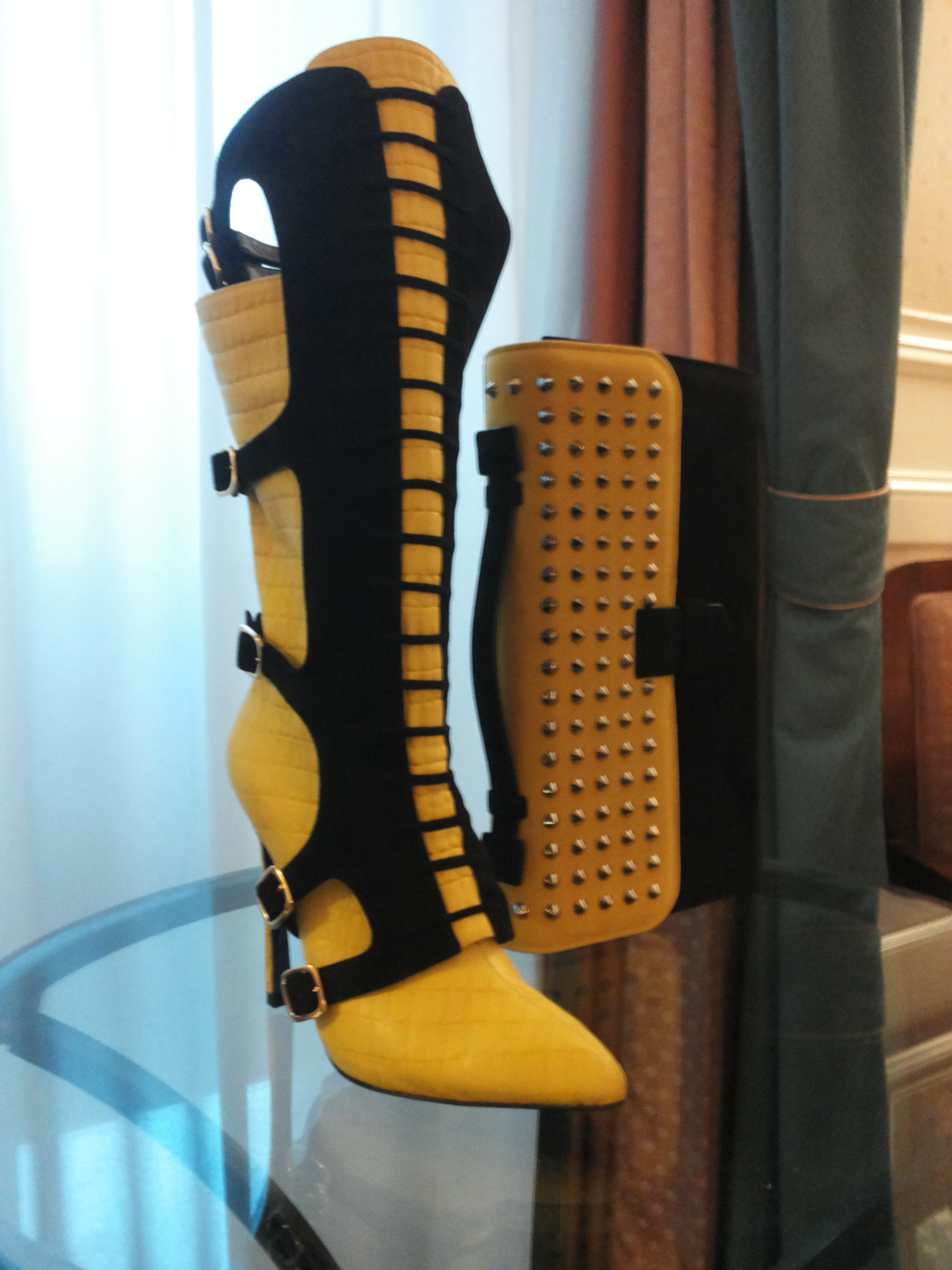 Tra i creativi che hanno partecipato a questo evento anche Daniele Amato, che seguo quasi dall’inizio della sua carriera; grazie a Room Service ho avuto la possibilità di conoscerlo di persona e di fare quattro chiacchiere con lui, circondata dai modelli più particolari della sua collezione F/W 2015/2016. Ovviamente ho approfittato dell’occasione per indossare alcune scarpe, perché per me la qualità è importante quanto il design, e ci tenevo a farvi sapere cosa ne penso. Con voi sarò sincera come sempre: sono rimasta sconvolta dalla comodità delle scarpe che ho provato; non lo dico per dire, già al tatto la morbidezza dei pellami mi ha conquistata, ma infilare i piedi negli stivali gialli e neri che vedete qui sotto e sentirmi comoda nonostante l’altezza dei tacchi e le punte allungate mi ha davvero sorpresa.